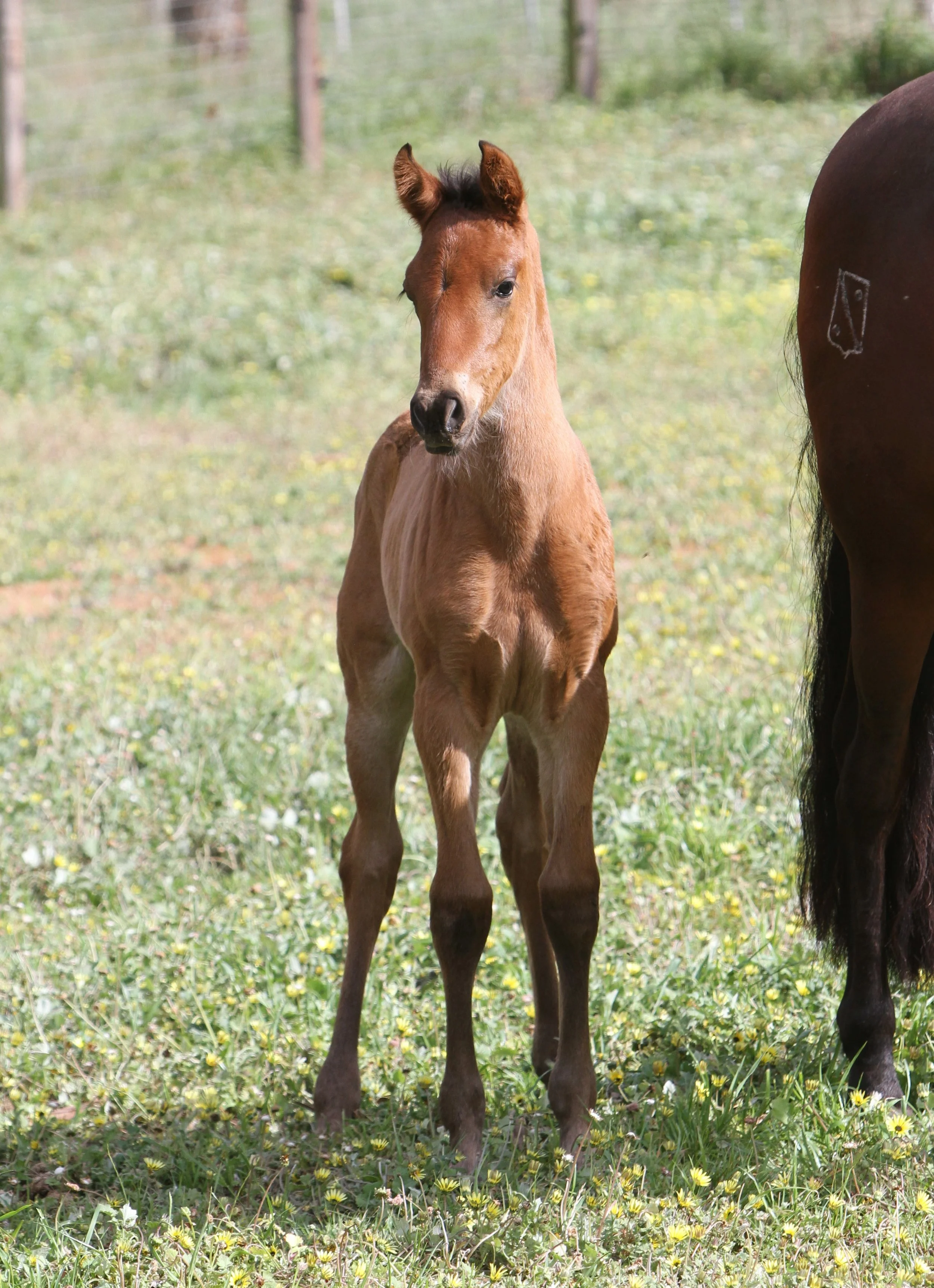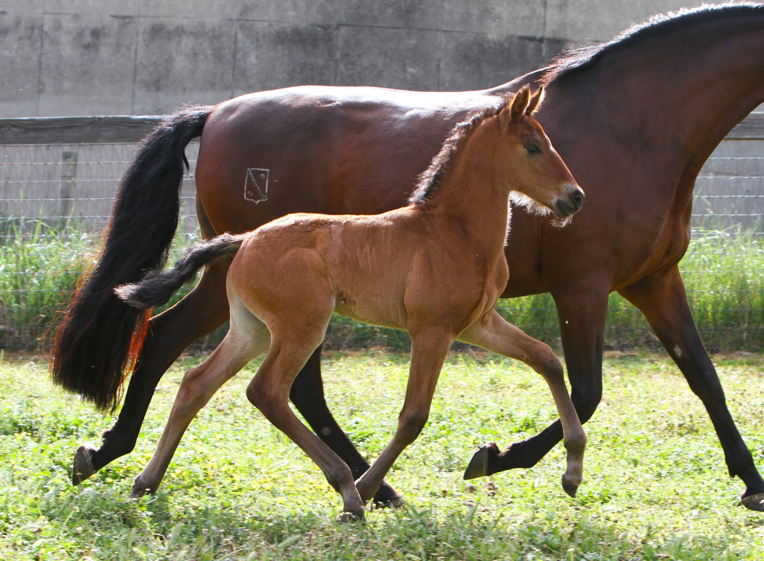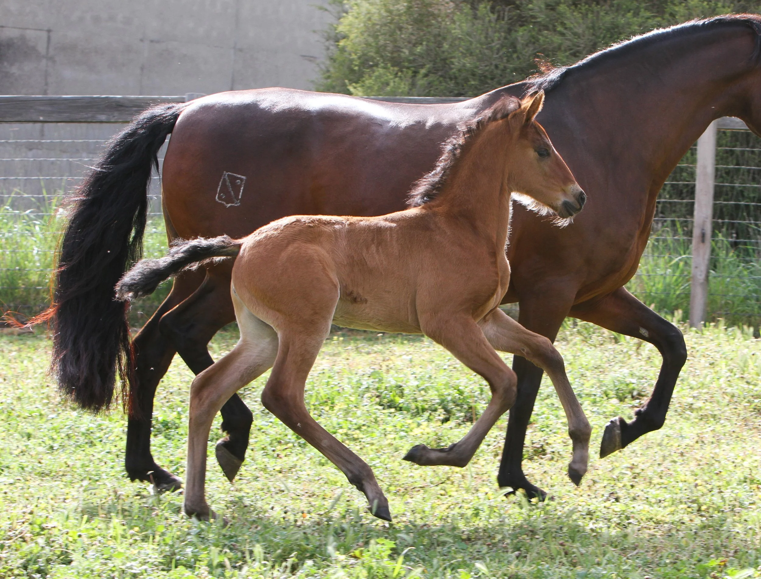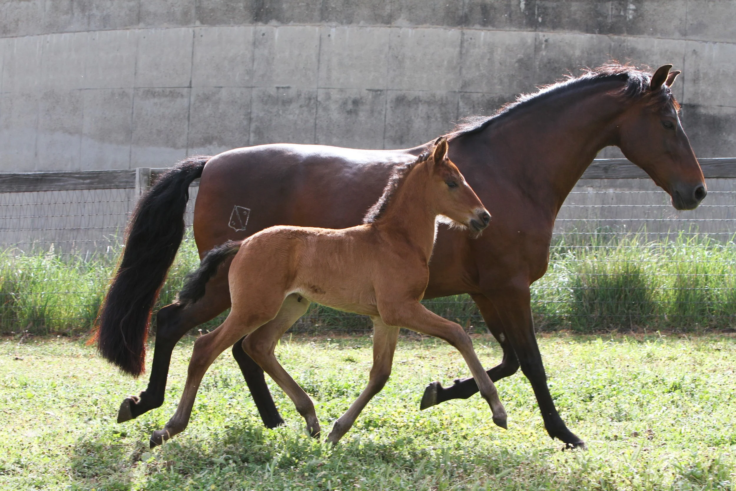 Siempre La Reina at 2 weeks of age in the paddock with her mum, Seni Zurda (imp. Spain)
